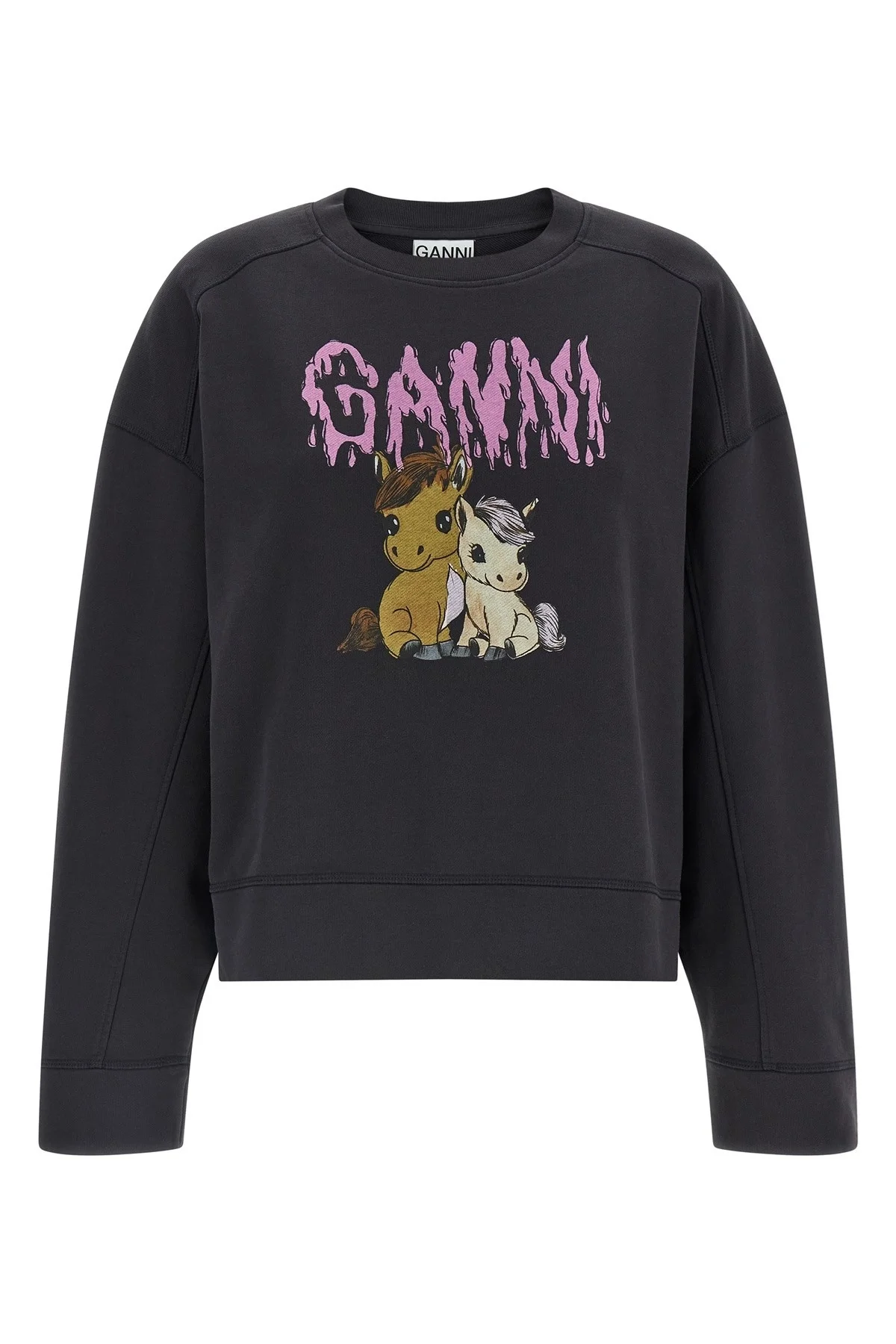 cod. A1060018252 'Isoli' cotton jersey sweatshirt with front print, crew neck, long cuffed sleeves. Color: Black Size & Fit: true to size fit Composition: 100% organic cotton Made in: Portugal