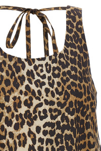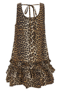 cod. W0906943 'Leopard Cotton Poplin Mini' leopard-print cotton poplin dress, round neckline at the front and back with back drawstring, sleeveless, ruffled skirt and ruffles. SUSTAINABLE: This product is made of organic cotton. Color: Brown Size & Fit: true to size fit - EU size Composition: 100% organic cotton Made in: India