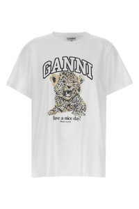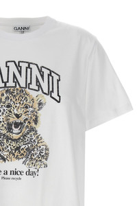 cod. T4124943 'Leopard' cotton crew neck t-shirt with front print, short sleeves. SUSTAINABLE: This product is made of organic cotton. Color: White Size & Fit: Relaxed fit Composition: 100% cotton Made in: Portugal