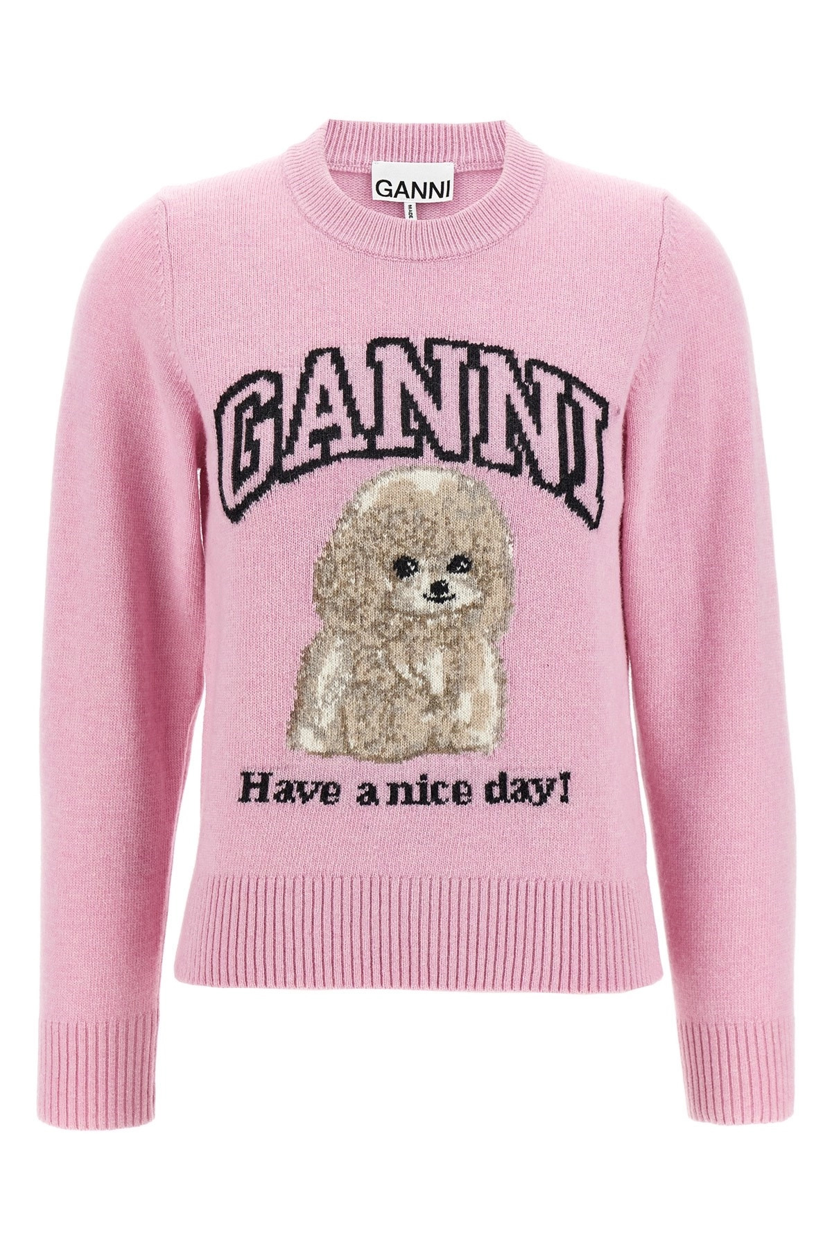 cod. K2499868 Pink Poodle' wool sweater with front jacquard logo, crew neck, long cuffed sleeves. SUSTAINABLE: Product made with recycled wool. Color: Pink Size & Fit: true to size fit Composition: 80% wool, 20% polyamide Made in: Moldova