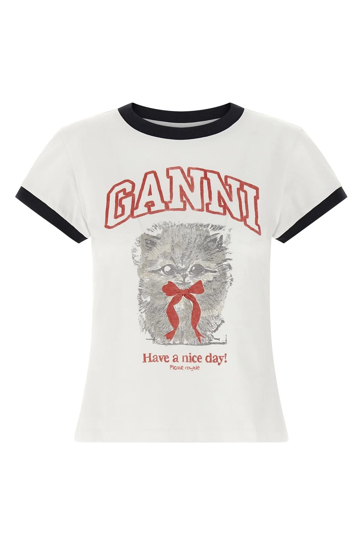 cod. A1050030151 Cotton, crewneck t-shirt with front print, short sleeves. SUSTAINABLE: This product is made of organic cotton. Color: White Size & Fit: True to size fit Composition: 100% organic cotton Made in: Portugal