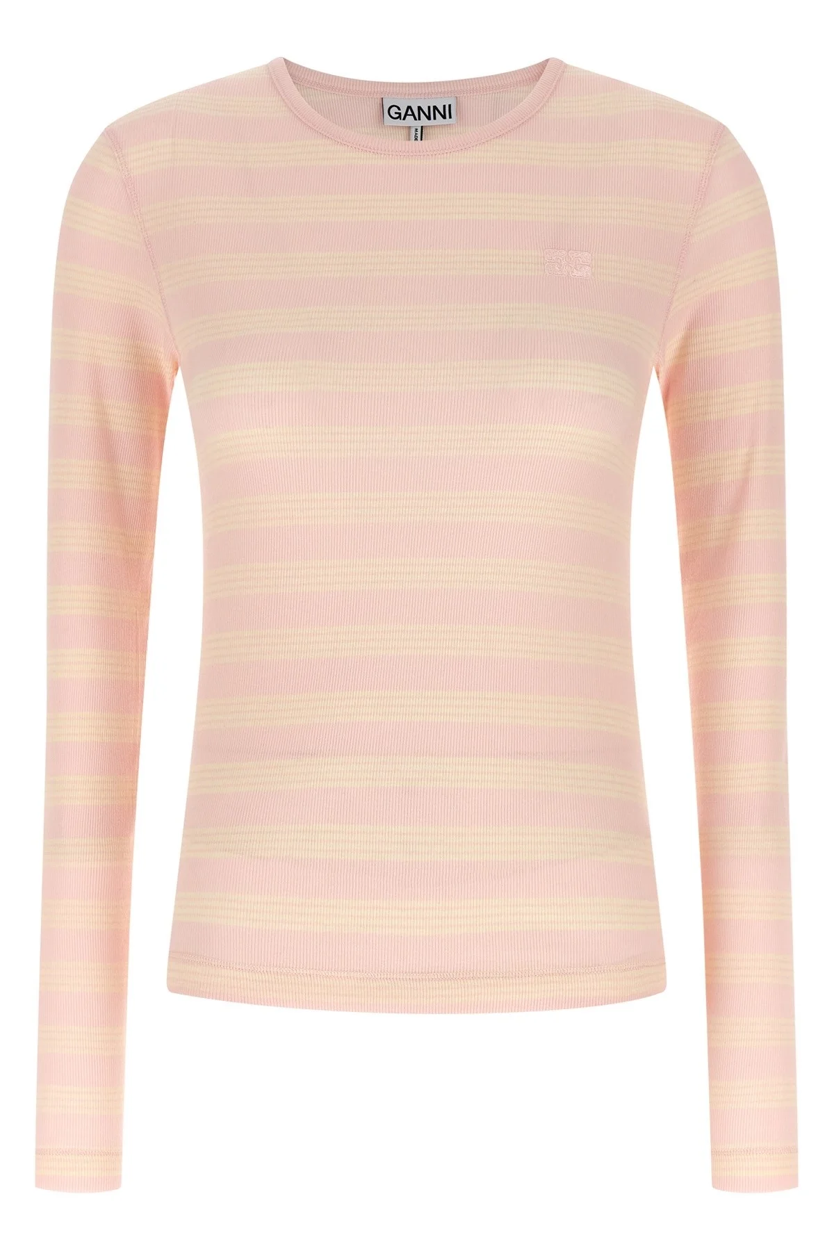 cod. A1050066868 Ribbed stretch cotton sweater with crew neck, front embroidery, long sleeves. Color: Pink Size & Fit: True to size fit Composition: 95% cotton, 5% elastane Made in: Portugal