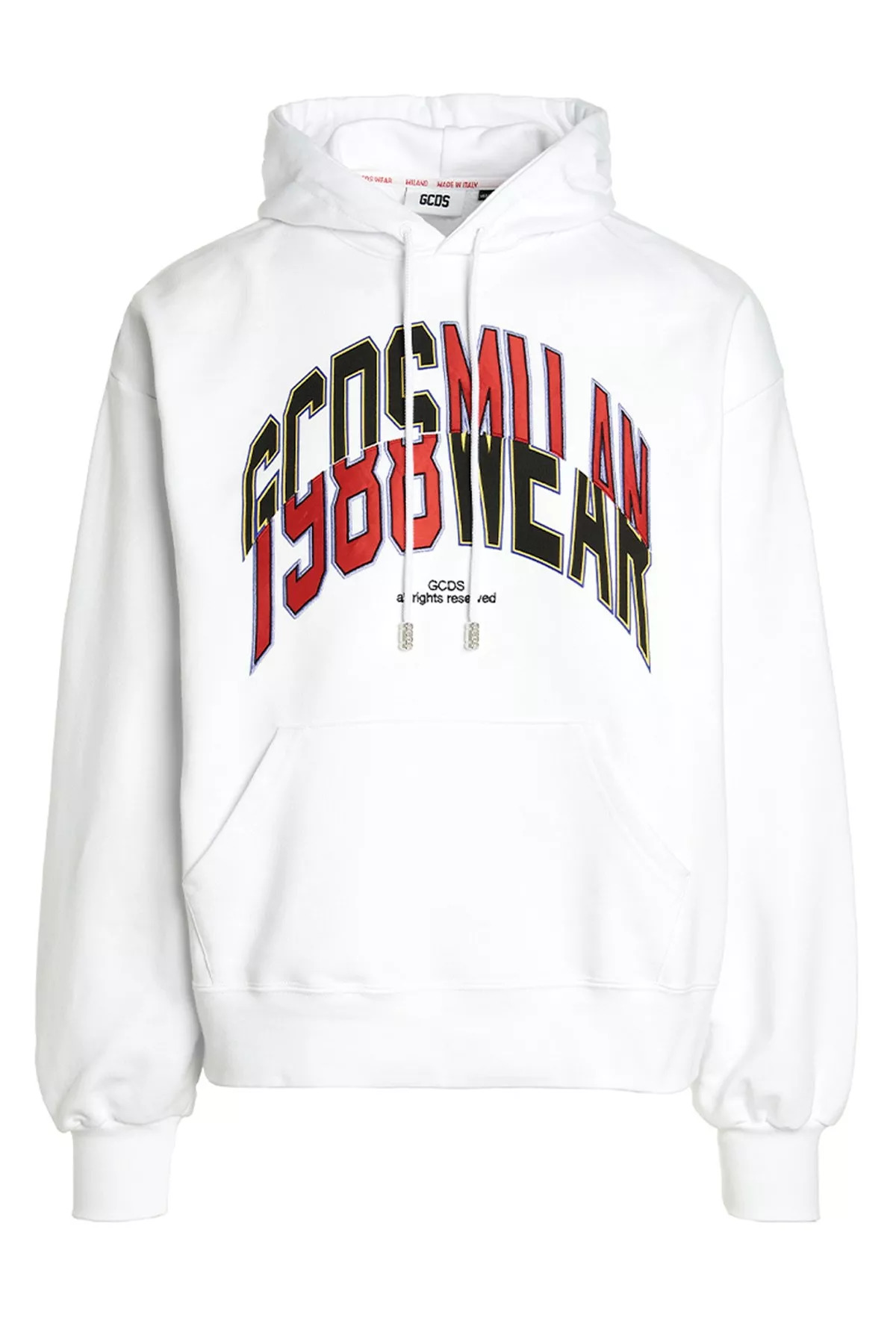 cod. SS23M10016701 'College' cotton hoodie with a front logo print, a kangaroo pocket, and long cuffed sleeves. Color: White Made in: Italy Size&Fit: oversize fit