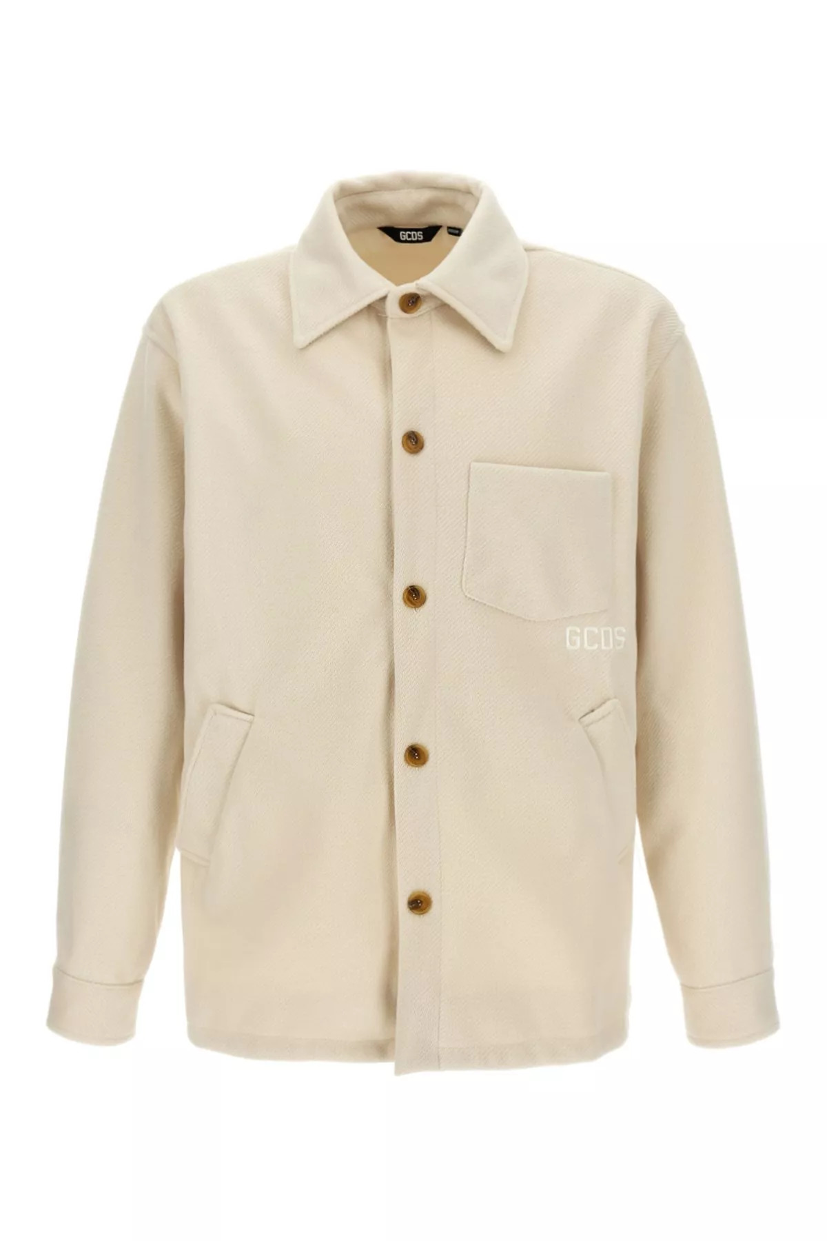 cod. FW23M23048166 Jacket with tone-on-tone embroidered logo on the front and back, pockets, button closure, and long cuffed sleeves. Color: White Size & Fit: true to sizer fit Composition: 100% polyester