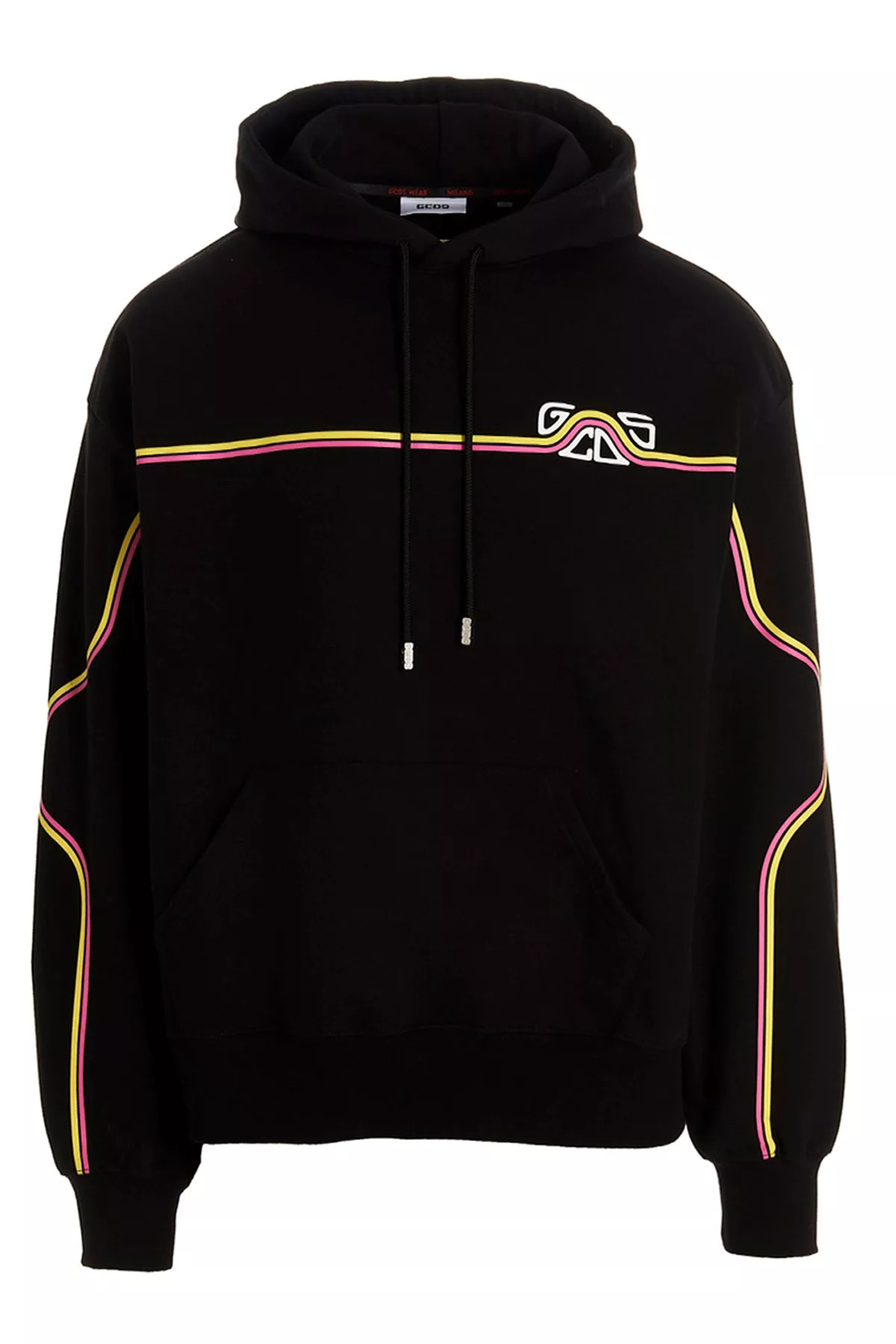 cod. SS23M10062802 Cotton hoodie with front 'Waved Logo' print, a kangaroo pocket, and long cuffed sleeves. Color: Black Material: 100% cotton Made in: Romania Size&Fit: oversize fit