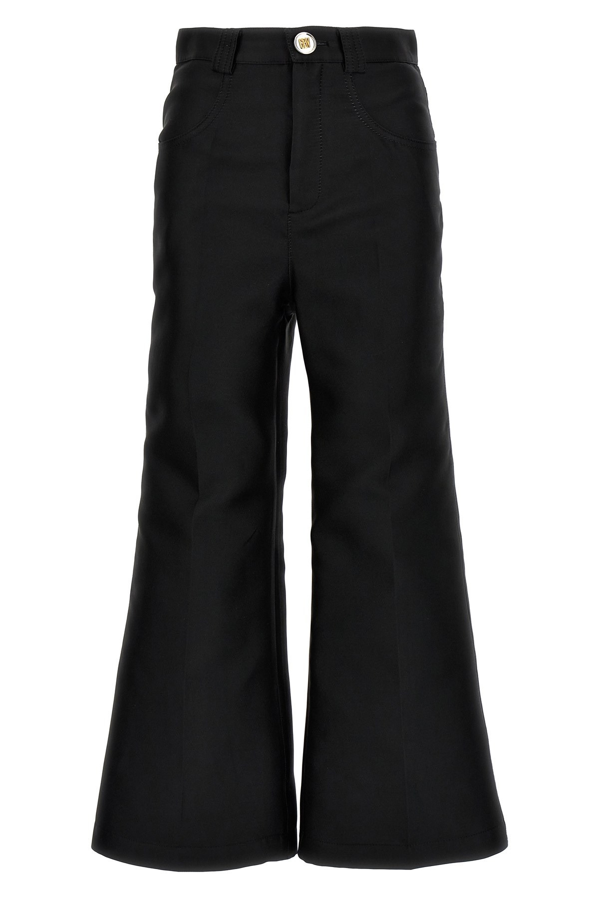 cod. 23FWPVCA315712DOU9999 Cropped silk blend pants, zip and button closure, central pleat leg, pockets. Color: Black Composition: 70% polyester, 30% silk Size&Fit: true to size fit