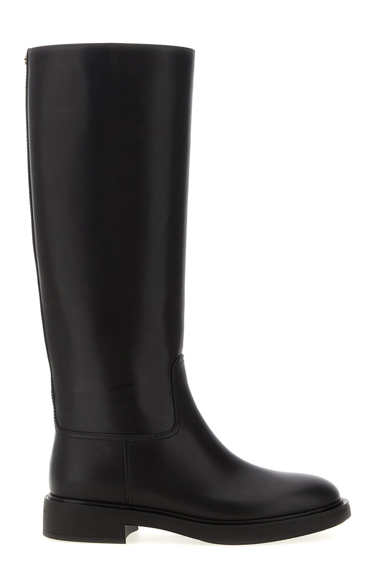 cod. G8012820GOMCLNMOKA 'Ascott' leather boots, pull-on model with rounded toe, metal 'Ribbon' logo applied at the back, rubber sole. Color: Brown Size & Fit: EU WOMEN Composition: 100% calfskin leather (Bos Taurus) Made in: Italy