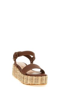 cod. G3267120RICCLNCUOI 'Cestino' leather sandals with woven straw midsole, adjustable ankle strap, wedge, rubber sole. Color: Brown Size & Fit: EU WOMAN - Heels: 6 cm Composition: 100% calfskin leather (Bos Taurus) Made in: Italy