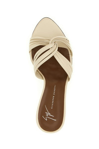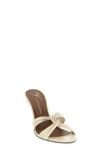 cod. E600037001 'Clandestino' leather sandals with high heels, front weave with opening, leather sole. Color: White Size & Fit: EU WOMEN Heel: 9 cm Composition: 100% calfskin leather (Bos Taurus) Made in: Italy