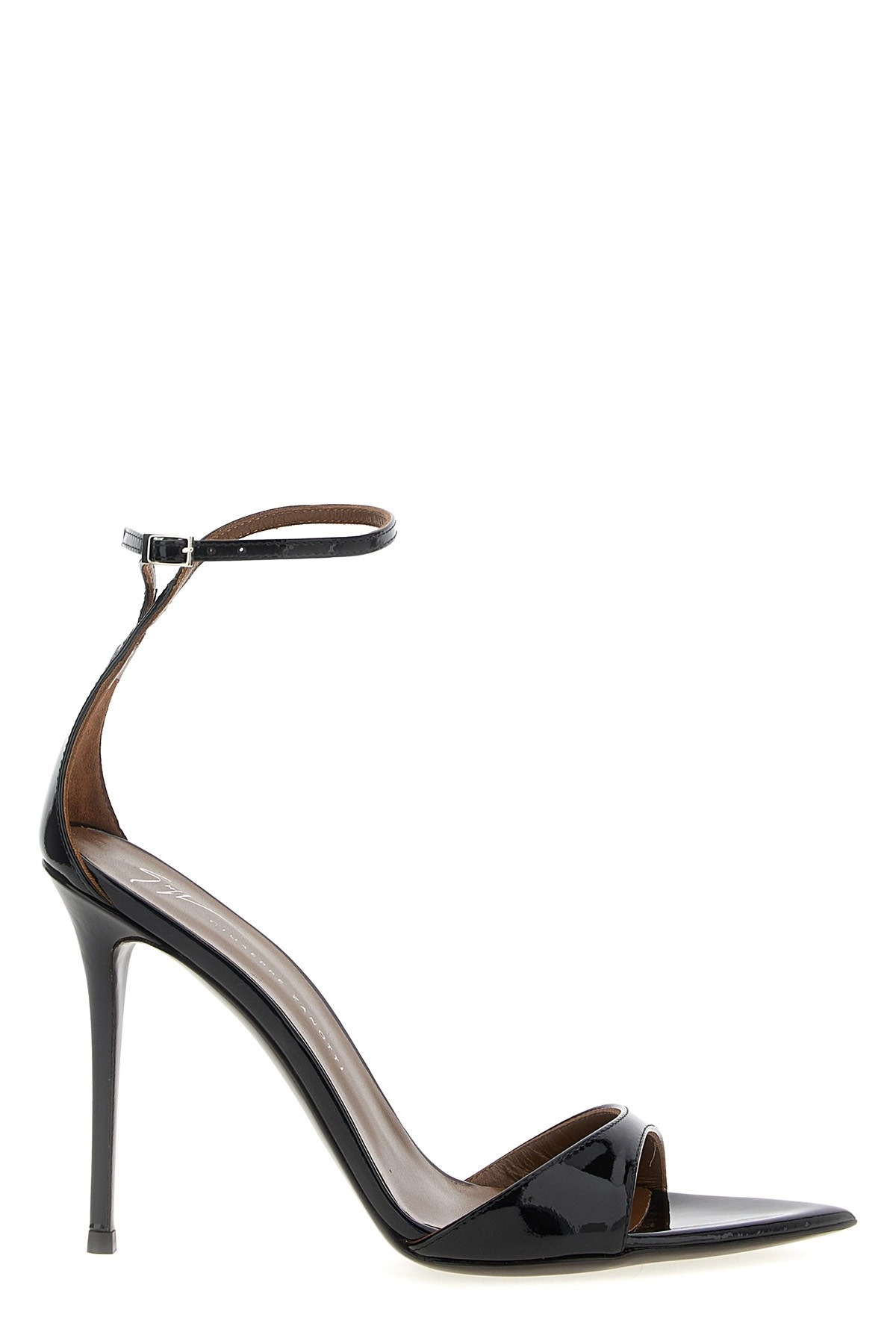 cod. I400005006 'Intrigo' patent leather sandals, pointed toe, adjustable ankle strap, stiletto heel, leather sole. Color: Black Size & Fit: EU WOMAN - Heel: 10.5 cm Composition: 100% calfskin leather (Bos Taurus) Made in: Italy