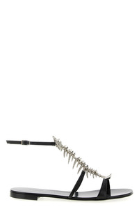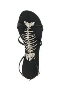 cod. E600029001 'Slim' low style sandals with straps and 'lisca di pesce' metal front detail with studs and rhinestones, adjustable ankle strap with buckle. Color: Black Size & Fit: EU WOMEN Composition: 100% lamb leather (Ovis aries) Made in: Italy