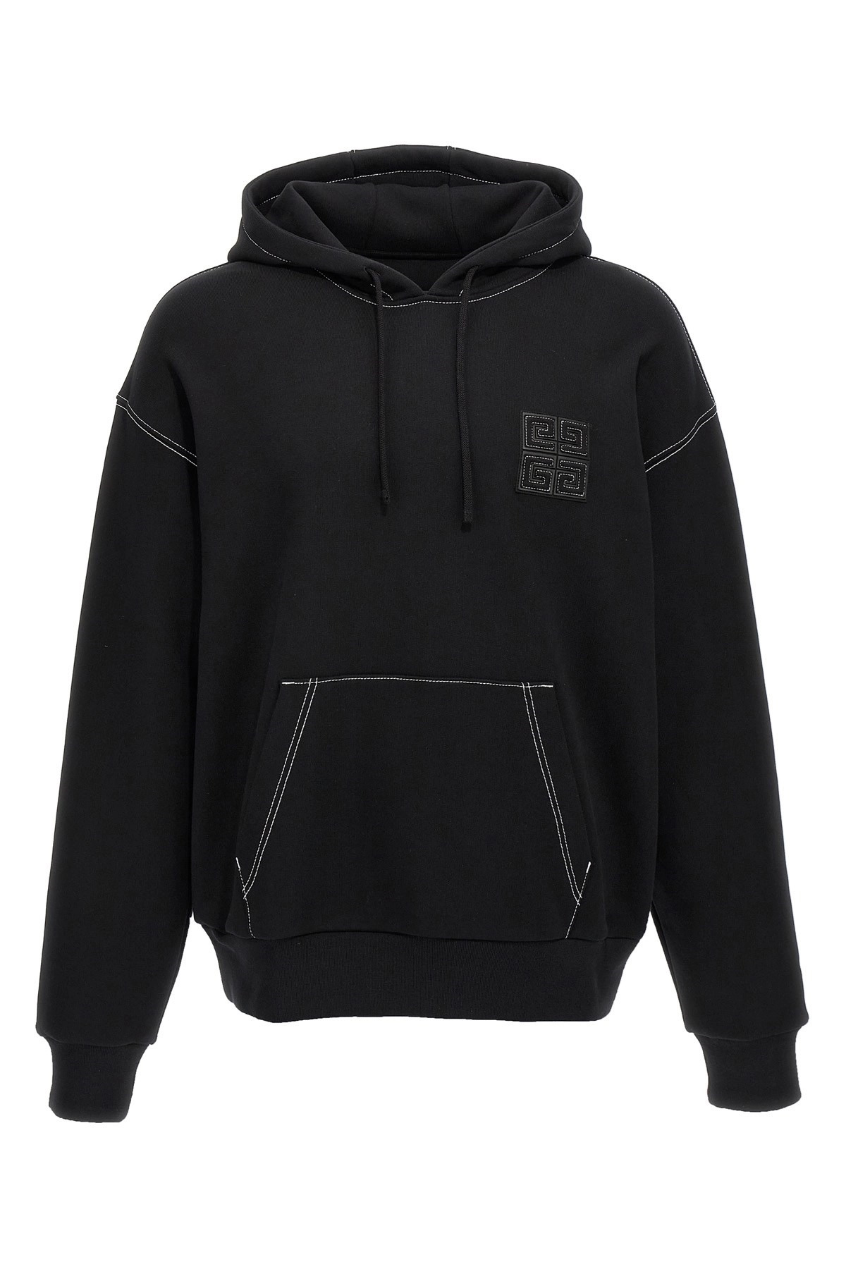 cod. BMJ0LA3YPQ004 Brushed cotton hoodie with embossed '4G' logo patch on the front, contrast stitching, kangaroo pocket, long cuffed sleeves. Color: Black Size & Fit: Comfort fit Composition: 100% cotton Made in: Portugal