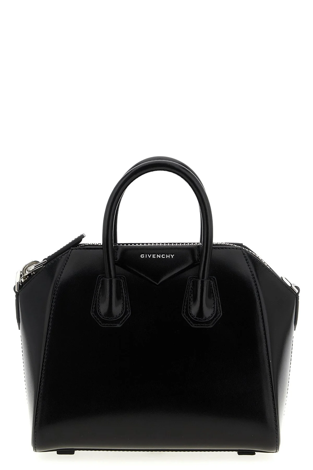cod. BB5148B1R0001 Solid color 'Antigona' mini handbag in 'Box' leather with silver hardware, leather handles, removable shoulder strap. Color: Black Size & Fit: W 26 x H 19 x D 13 cm Composition: 100% calfskin leather (Bos Taurus) Made in: Italy