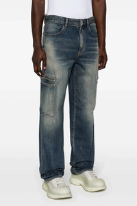 cod. BM517E5YAB420 Cargo denim jeans with zipped pockets and pockets, 4G print on the back, paint splashes. Color: Blue Size & Fit: Loose fit Composition: 100% cotton