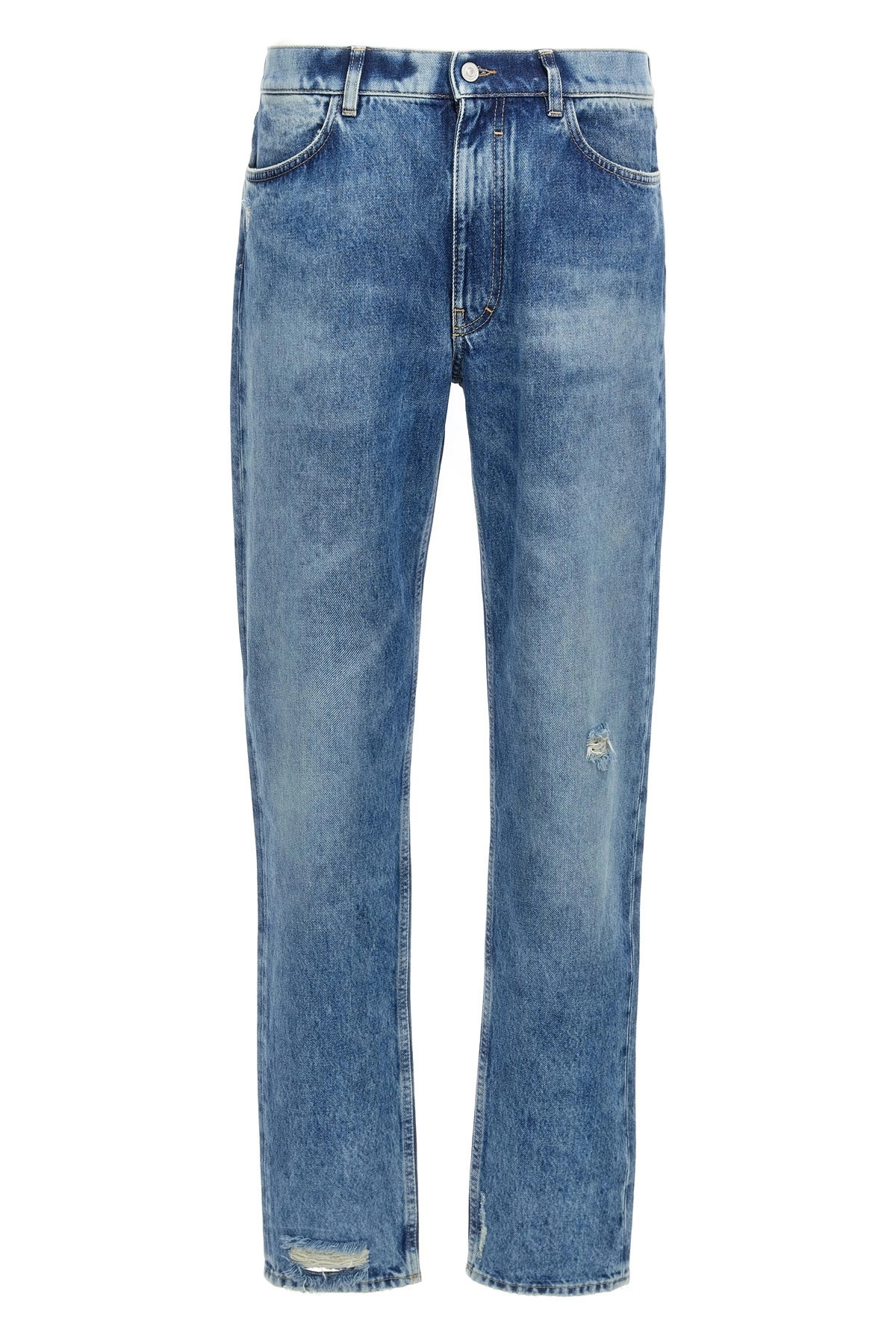 cod. BM51HB5YB6426 5-pocket cotton denim jeans Straight fit, belt loops, zip and button closure, used-effect hem. Color: Blue Size & Fit: True to size fit Composition: 100% cotton Made in: Italy