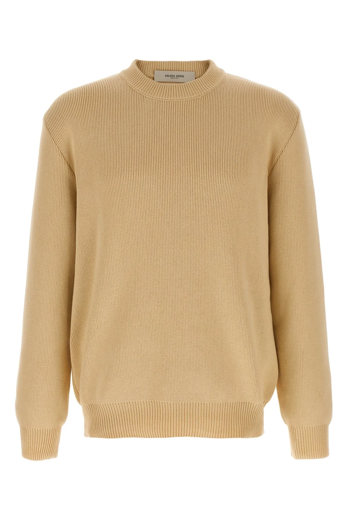 Men’s beige crew neck sweater with ‘Golden’ lettering on the back