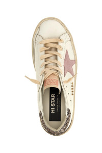 cod. GWF00119F0053351169611696 'Hi Star' leather sneakers with suede side star, glitter heel, lace-up closure, rubber sole with used-effect details. Color: Multicolor Size & Fit: EU WOMEN Composition: 88% le 9% pe 3% co