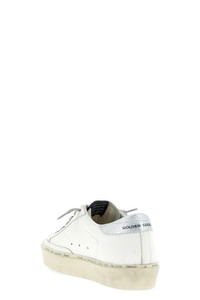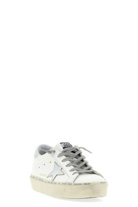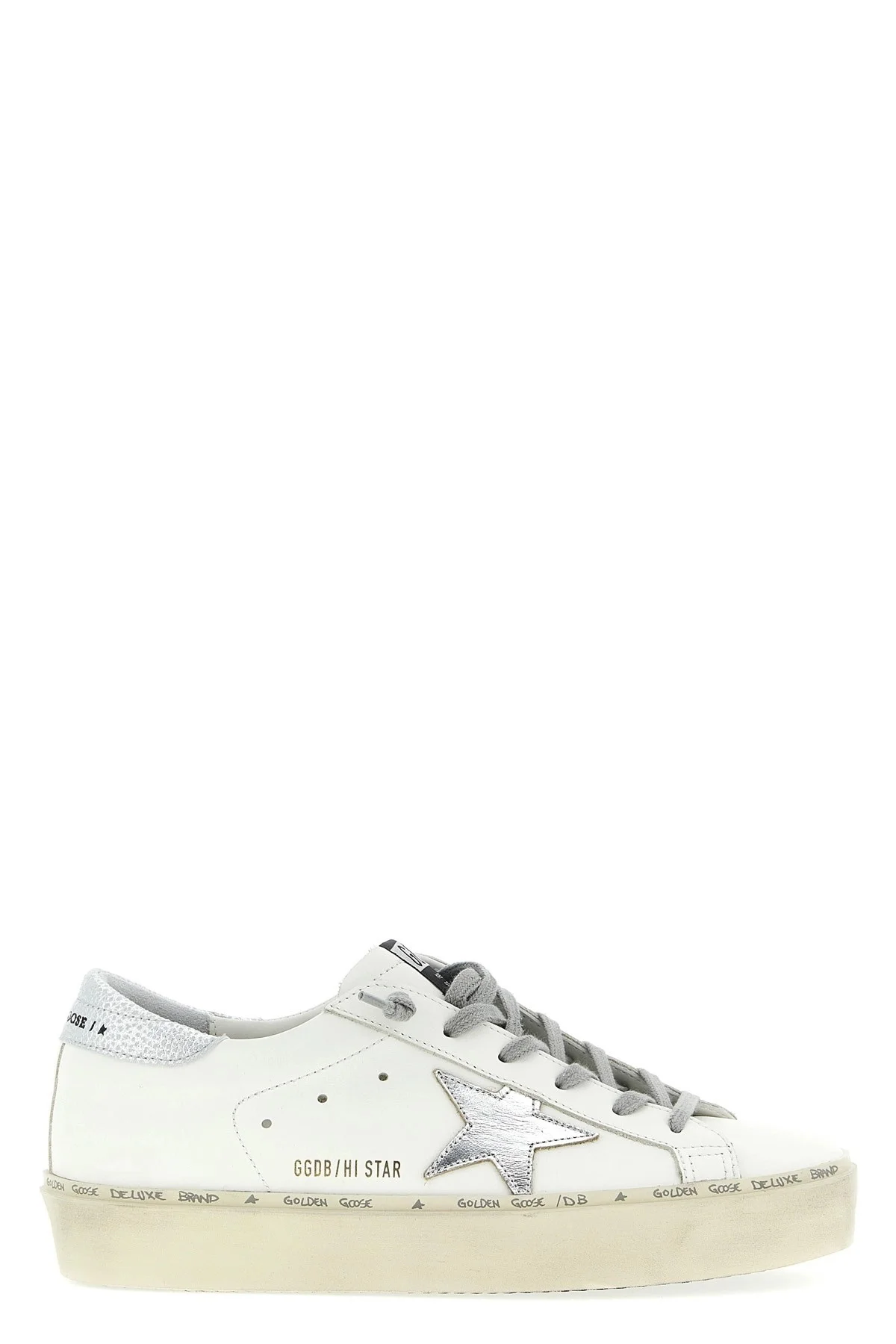 cod. GWF00118F0003298018580185 Golden Goose 'Hi-Star' leather sneakers featuring a star on the side, a silver metallic heel, and a contrasting logo print between the sole and upper. Color: White Size & Fit: EU WOMAN Composition: 95% cow leather 5% goat leather