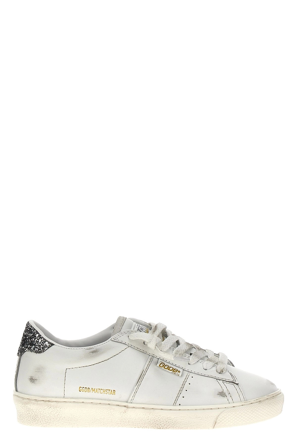 cod. GWF00796F0063781044910449 'Matchstar' leather sneakers with used-effect details, glitter heel, lace-up closure, rubber sole. Color: Silver Size & Fit: EU WOMEN Composition: 97% le 2% pbt 1% co Made in: Italy