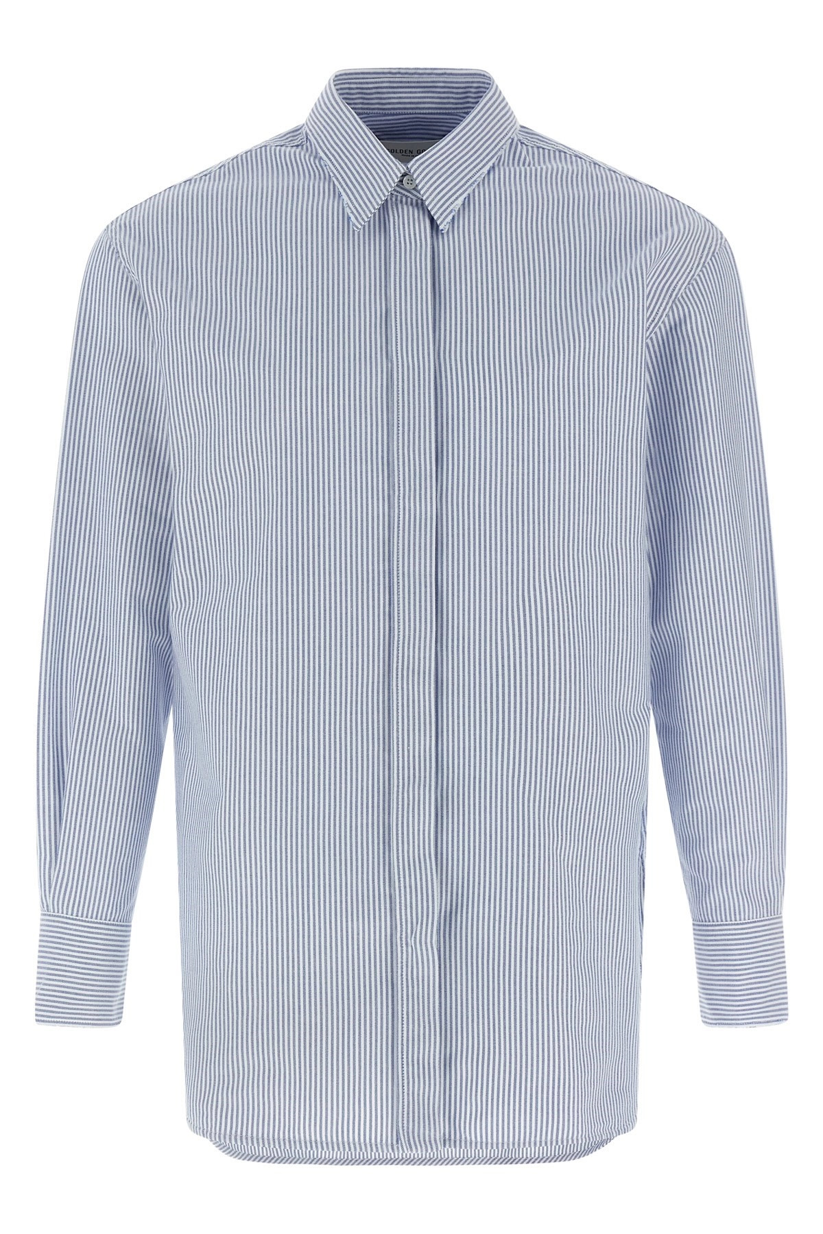 cod. GWP00820P0005488019780197 Striped Oxford cotton boyfriend shirt with front button closure. Comfort fit. Color: Light Blue Fabric: 100% cotton Size & Fit: true to size fit