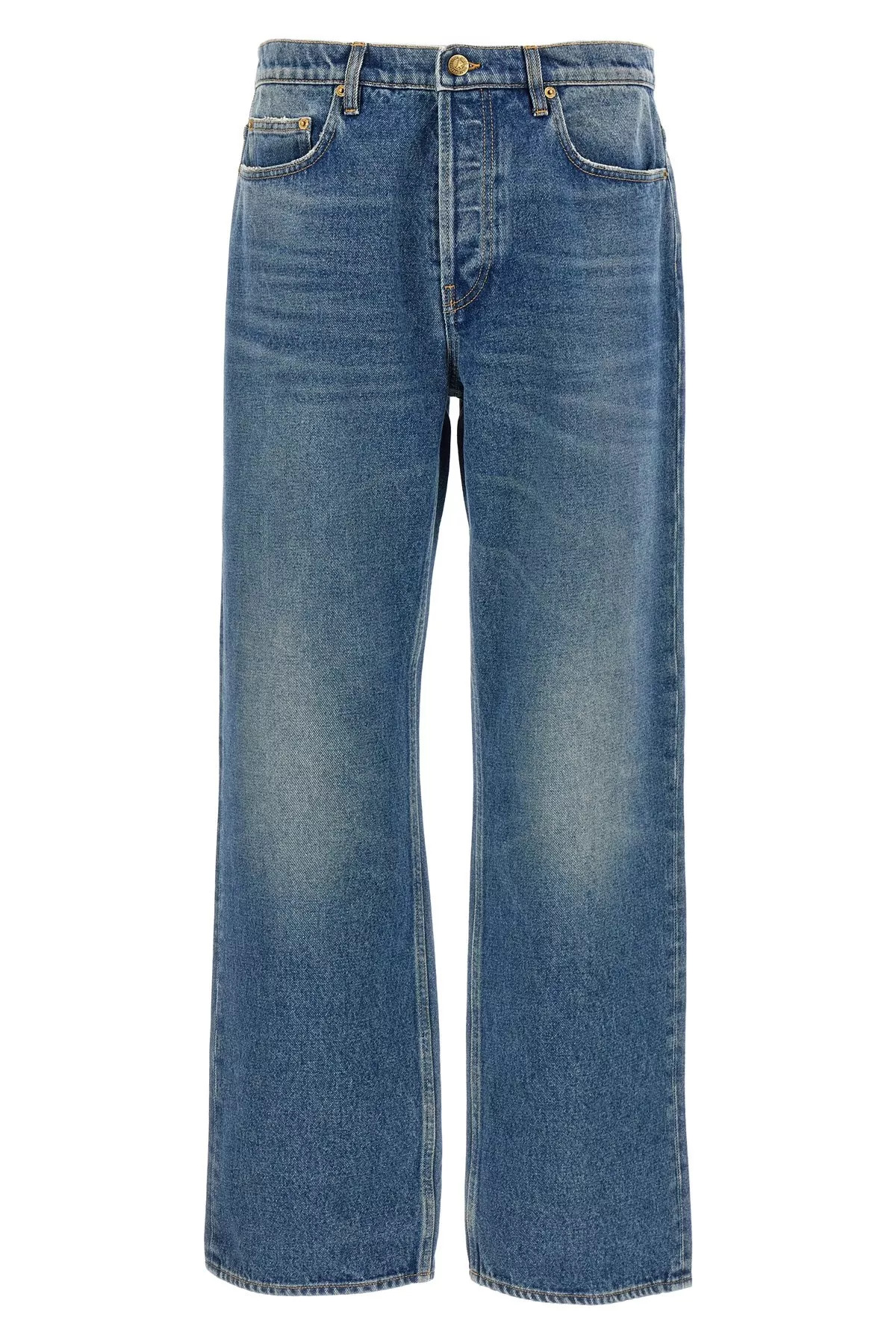 cod. GMP01636P0006215010050100 'Skate' used-effect stonewashed cotton denim jeans with front button closure, five pockets, straight leg. Color: Blue Size & Fit: true to size fit Composition: 100% cotton Made in: Italy
