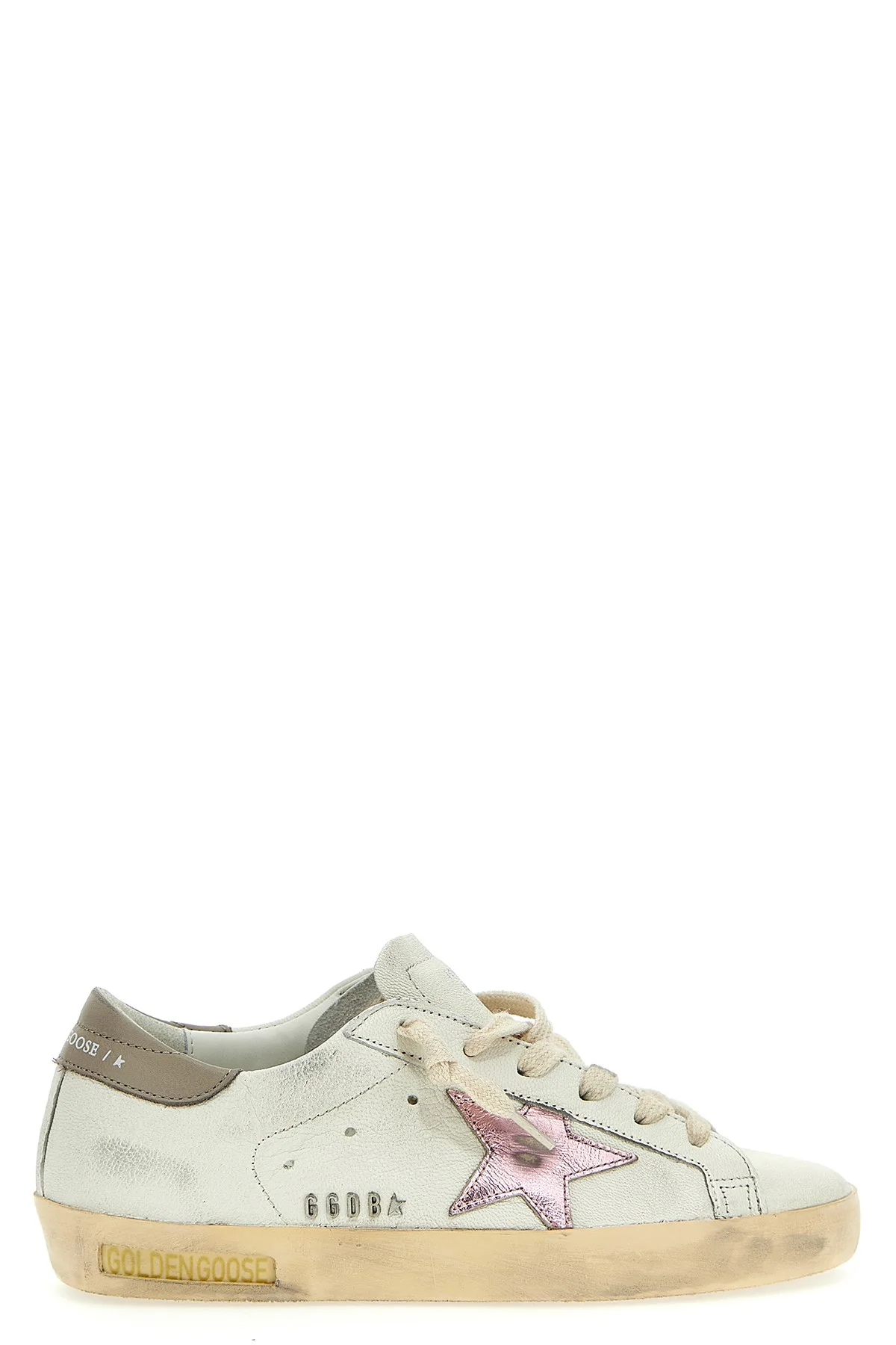 cod. GWF00101F0040651137311373 Superstar sneakers in used-effect leather, contrasting details, laces, and rubber sole. Color: White Size & Fit: EU WOMAN Composition: 100% calfskin leather (Bos Taurus) Made in: Italy