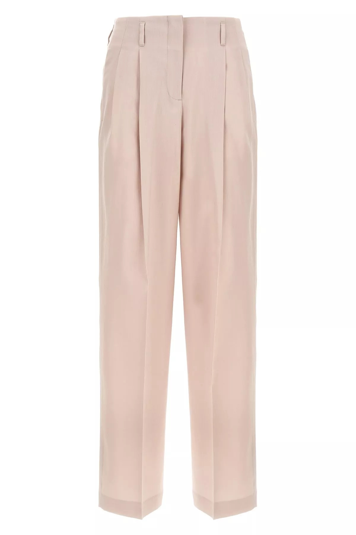 cod. GWP01203P0019652523525235 Wool pants, wide leg, pleats, stretched pleat, pockets, hook and button zip closure. Color: Pink Size & Fit: true to size fit Composition: 100% virgin wool Made in: Italy