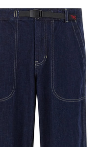 cod. G5FMP026INDIGO 'Japanese Slub' jeans in Japanese Kaihara denim woven with Cordura® nylon, contrast stitching, wide leg, front zip and button closure, elastic waistband with integrated belt with cinch closure, pockets, back logo patch. Color: Blue Size & Fit: Loose fit Composition: 100% cotton Made in: Vietnam