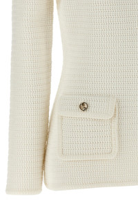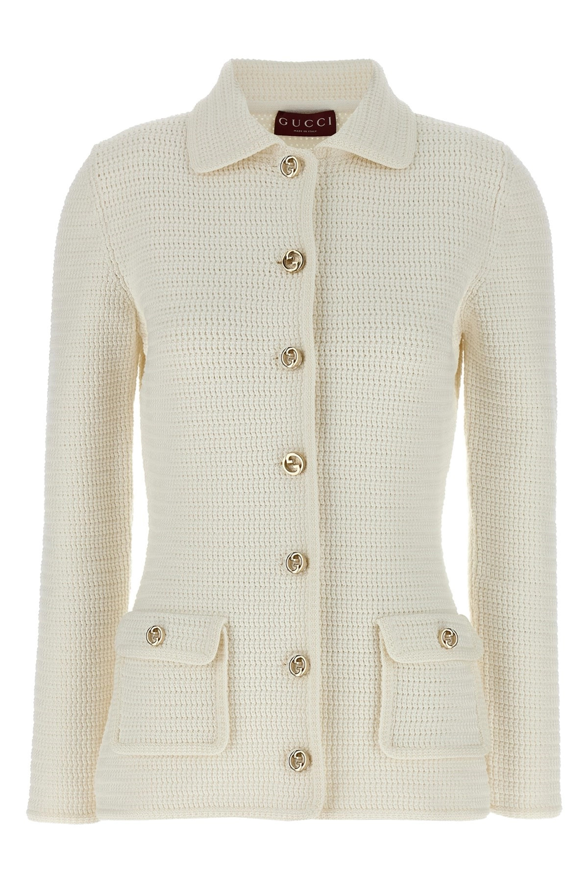 cod. 819372XKEOP9055 Knitted cotton cardigan, front metal GG button closure, pockets, long sleeves. Color: White Size & Fit: true to size fit Composition: 100% cotton Made in: Italy