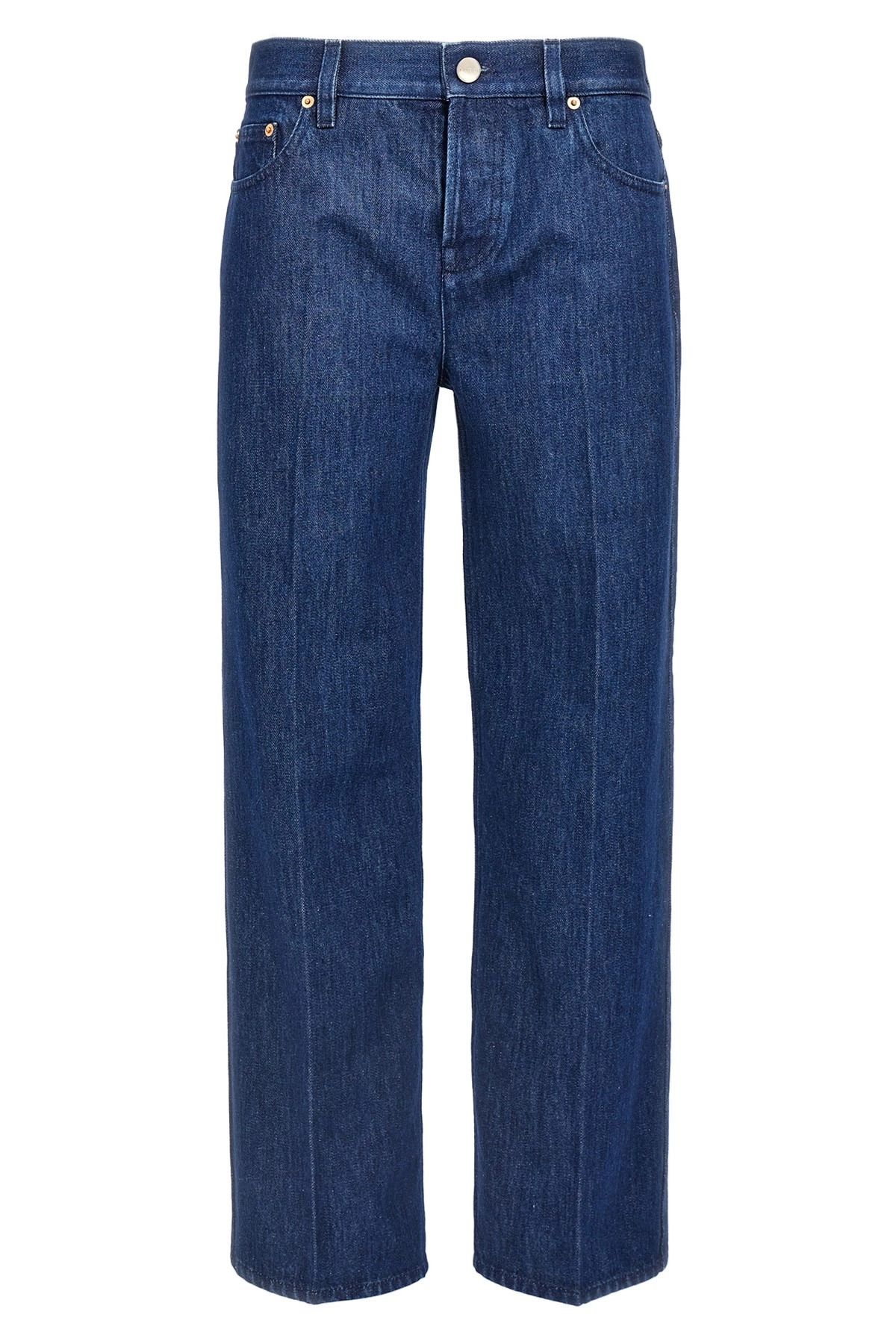 cod. 812233XDC834100 Straight cotton denim jeans with front stretched pleat, leather back logo tag, five pockets. Color: Blue Size & Fit: True to size fit Composition: 100% cotton Made in: Italy