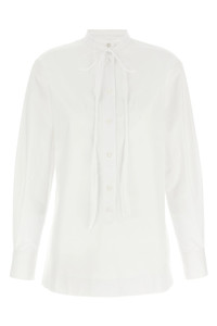 cod. 836454Z7ADR9000 Cotton poplin shirt, strip collar with knotted webbing, front concealed button closure with tone-on-tone Double G embroidery detail, and long sleeves with cuffs. Color: White Size & Fit: true to size fit Composition: 100% cotton Made in: Italy