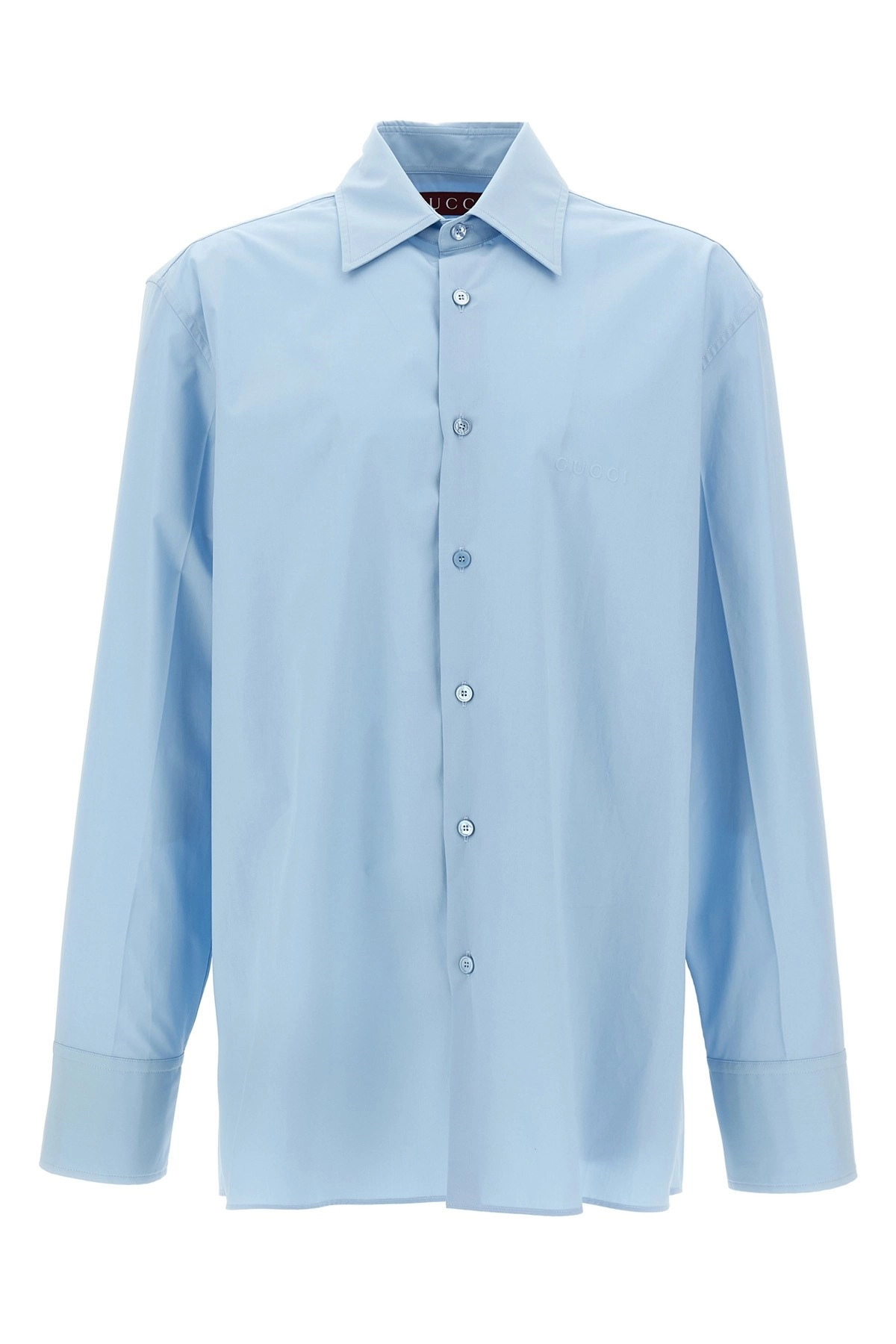 cod. 823830Z7AMD4030 Cotton poplin shirt with embossed front logo, button closure, long cuffed sleeves and dropped shoulders. Color: Light Blue Size & Fit: true to size fit Composition: 100% cotton Made in: Italy