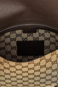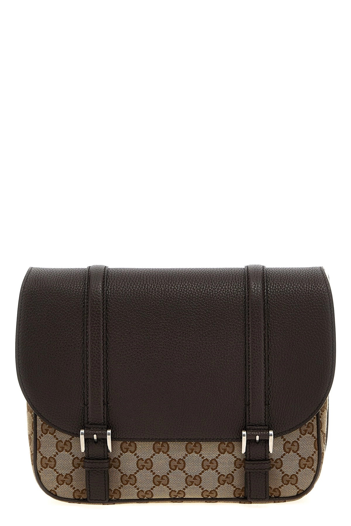 cod. 794872FADMZ9844 'GG' shoulder bag in GG fabric, front flap with magnetic closure, adjustable shoulder strap. Color: Brown Size & Fit: W 47 x H 30 x D 27 cm Composition: 65% polyester 18% cotton 17% polyamide Made in: Italy