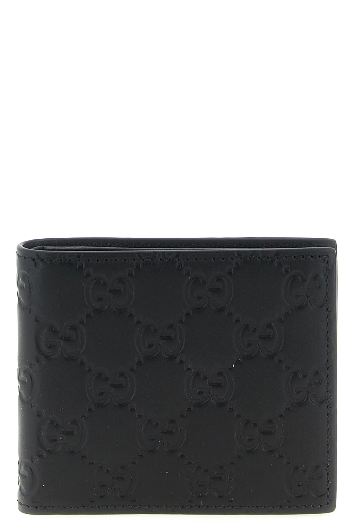 cod. 850175AAFDV1000 'GG Emblem' smooth leather wallet with embossed GG pattern, taffeta lining, bi-fold style, book opening. Color: Black Size & Fit: W 11 x H 9 cm Composition: 100% calfskin leather (Bos Taurus) Made in: Italy