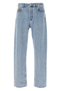cod. 835219XDDCY4452 Bleached-effect cotton denim jeans with front button closure, five pockets with GG fabric inserts, straight leg, back logo tag. Color: Blue Size & Fit: true to size fit Composition: 100% cotton Made in: Italy