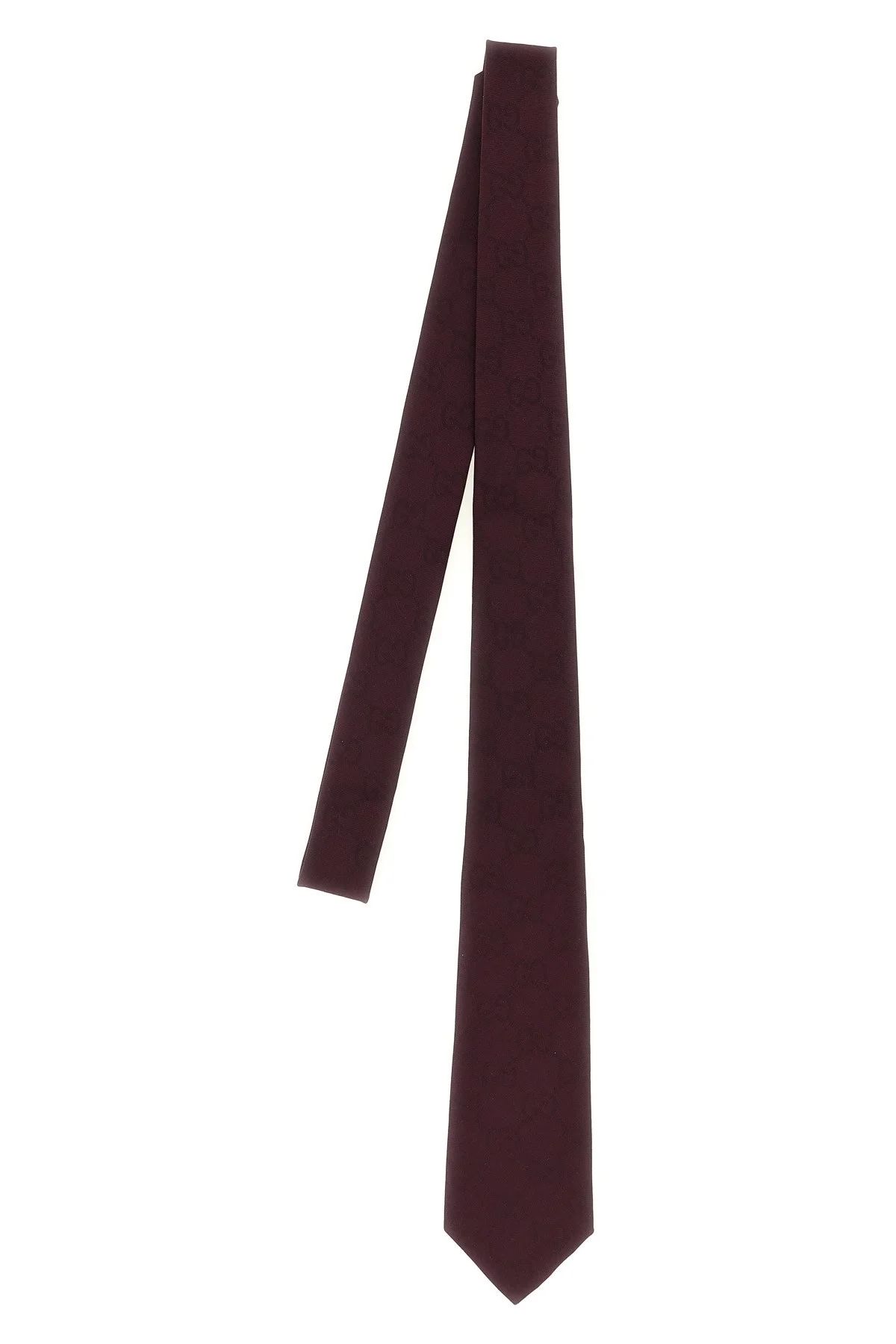cod. 8612994E6006100 'GG' cotton and silk jacquard tie. This tie is part of the 'Direttore' look of the 'La Famiglia' collection. Color: Bordeaux Size & Fit: Blade 7 cm Composition: 56% cotton, 44% silk Made in: Italy
