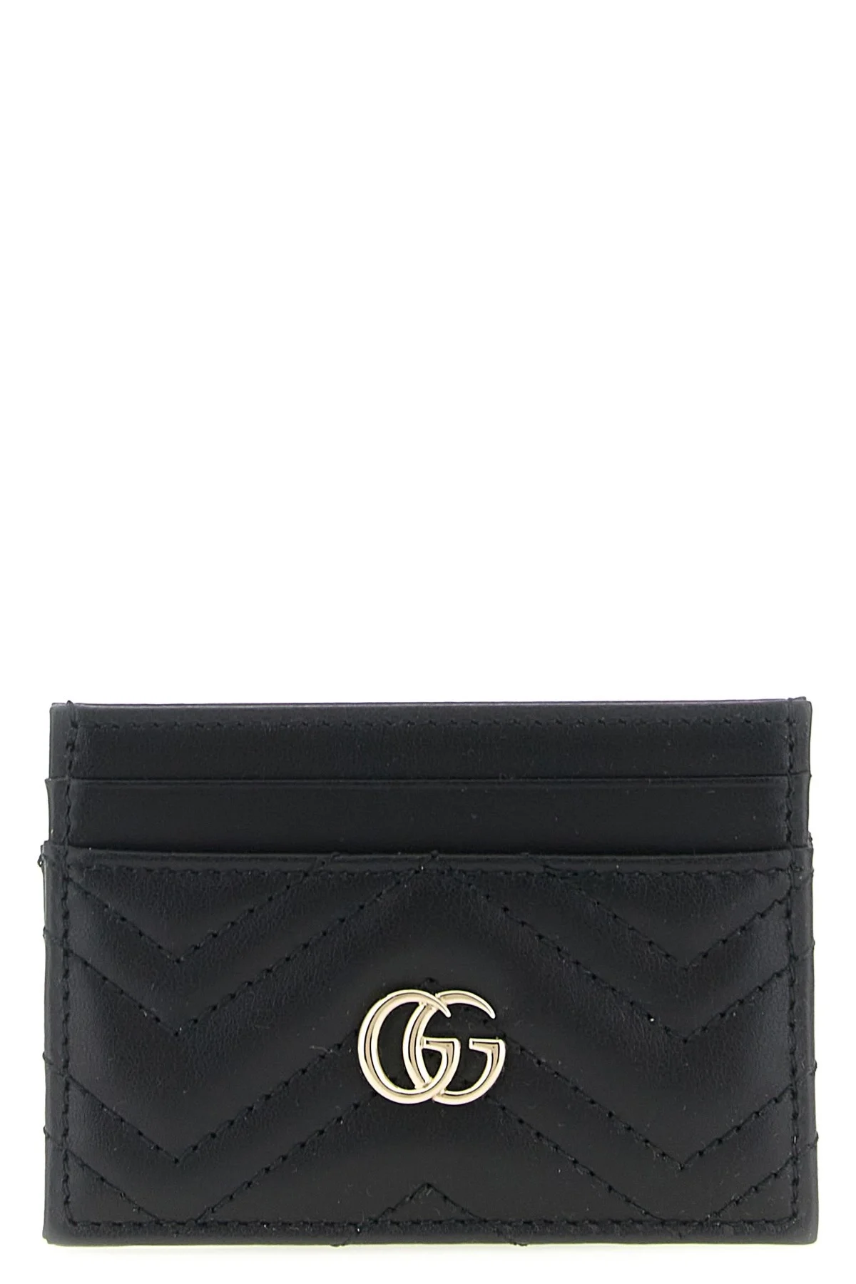 cod. 443127AAET81000 'GG Marmont' card holder in chevron matelasse leather with tone-on-tone fabric lining, metal 'Doppia G' detail on the front. Color: Black Size & Fit: W 10 x H 7 cm Composition: 100% calfskin leather (Bos Taurus) Made in: Italy