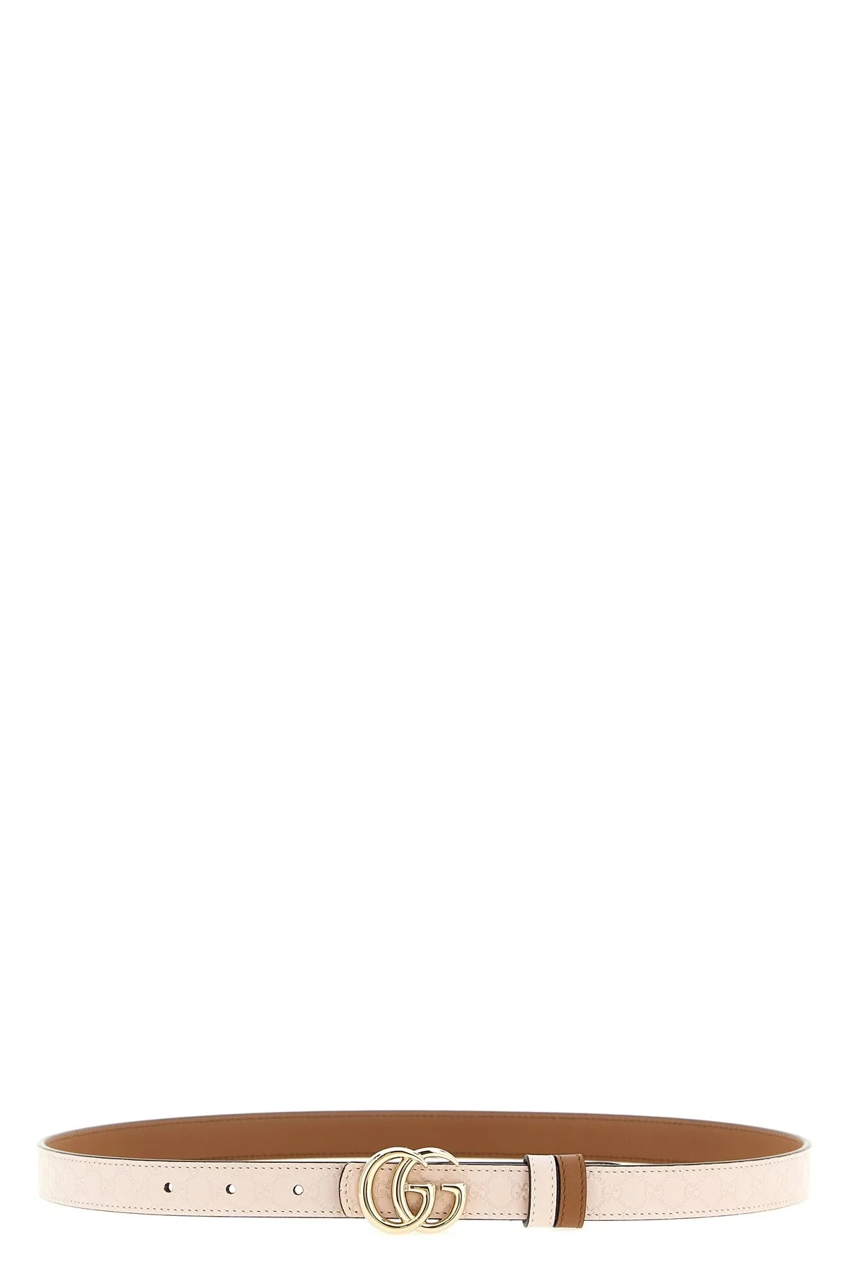 cod. 847132AAFYB5746 Thin reversible smooth leather belt with embossed GG and smooth lambskin and metal 'GG Marmont' buckle. Side A: smooth leather Side B: smooth leather with embossed GG Color: Multicolor Size & Fit: H 2 cm Composition: 100% calfskin leather (Bos Taurus) Made in: Italy