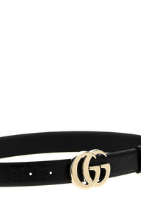 cod. 802949AAD5L1000 'GG Milano' leather belt with all-over embossed logo, metal logo buckle. Color: Black Size & Fit: H 3 cm Composition: 100% calfskin leather (Bos Taurus) Made in: Italy