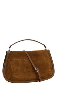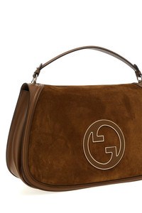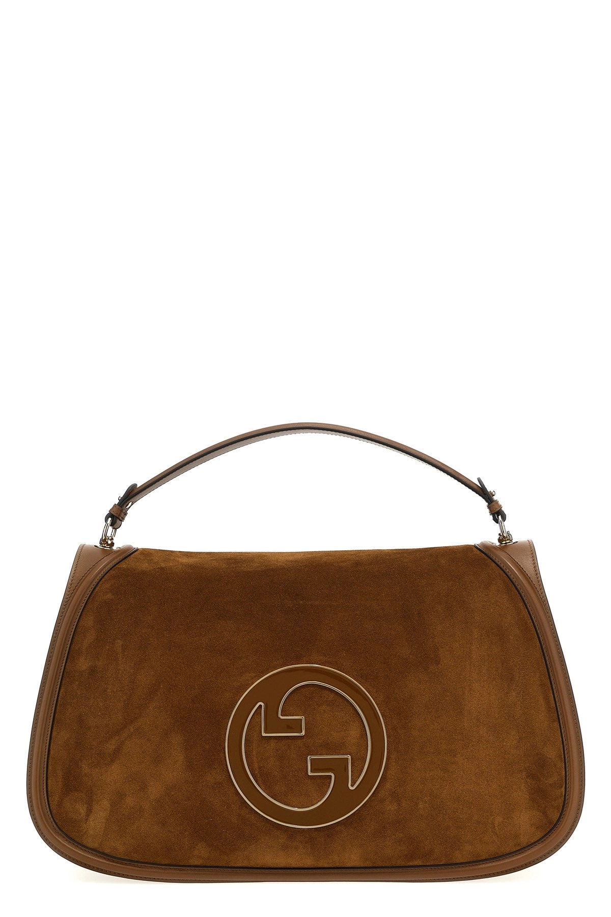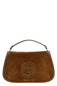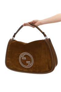cod. 815723CAAAU2808 'Gucci Blondie' large handbag in suede and smooth leather, maxi metal GG logo on the front, magnetic flap closure, fixed handle, adjustable and removable shoulder strap. Color: Brown Size & Fit: W 51 x H 30 x D 13 cm Composition: 100% calfskin leather (Bos Taurus) Made in: Italy