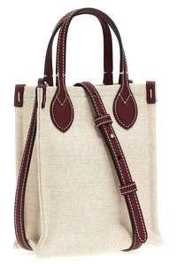 cod. 799300FACUL8574 'Gucci' canvas handbag with front logo print, leather details, double handle, adjustable and removable leather shoulder strap. Color: Beige Size & Fit: W 15 x H 19 x D 8 cm Composition: 59% polyurethane 24% cotton 17% linen Made in: Italy PROMO CODE NOT APPLICABLE