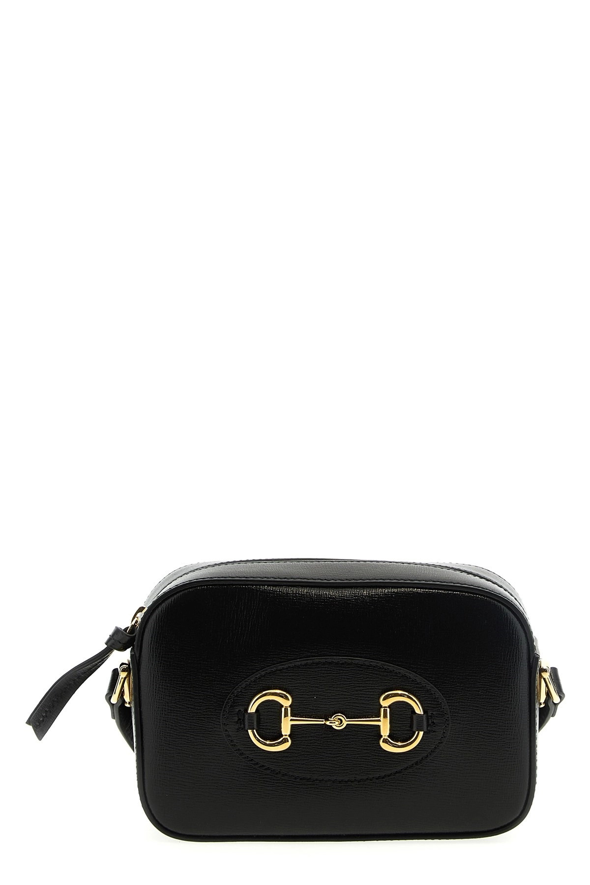 cod. 7601961AAQD1000 'Gucci Horsebit 1955' small leather crossbody bag with metal front clamp and zip closure. Color: Black Size & Fit: W 20 x H 13 x D 6 cm Composition: 100% calfskin leather PROMO CODE NOT APPLICABLE