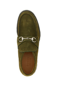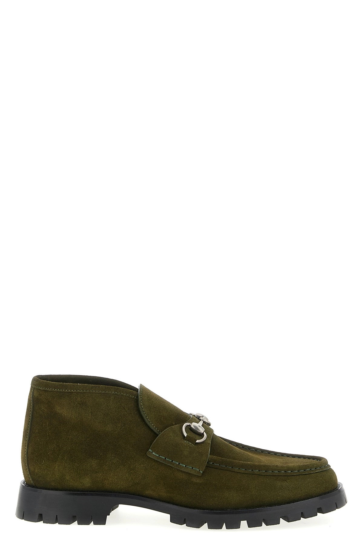 cod. 8010570PV003037 Suede ankle boots, front metal clamp detail, rubber tank sole. Color: Green Size & Fit: UK MEN Composition: 100% calfskin leather (Bos Taurus) Made in: Italy