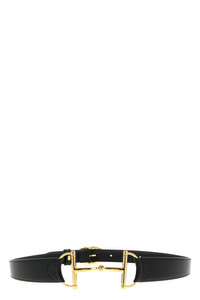 cod. 8471190YA0G1000 Leather belt with front metal clamp detail, adjustable with buckle. Color: Black Size & Fit: h 3.5 cm Composition: 100% calfskin leather (Bos Taurus) Made in: Italy