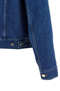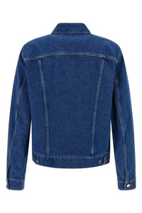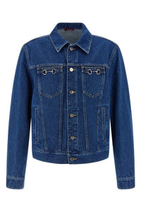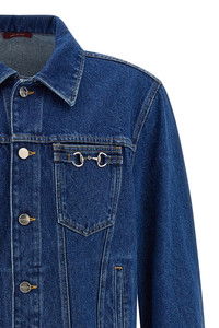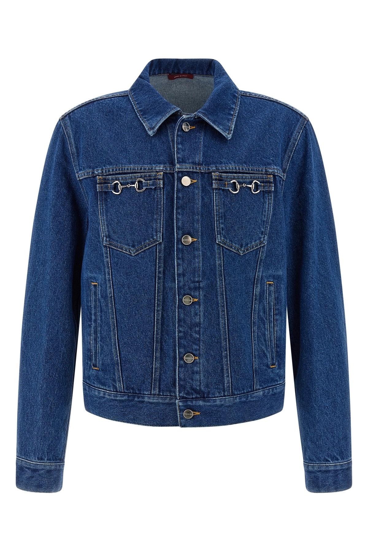 cod. 832476XDDCX4447 Cotton denim jacket with contrast stitching, front metal clamp details, shirt collar, button closure, pockets, long cuffed sleeves. Color: Blue Size & Fit: true to size fit Composition: 100% cotton Made in: Italy