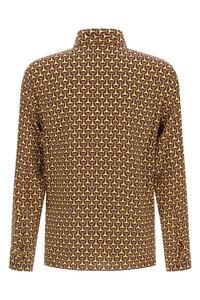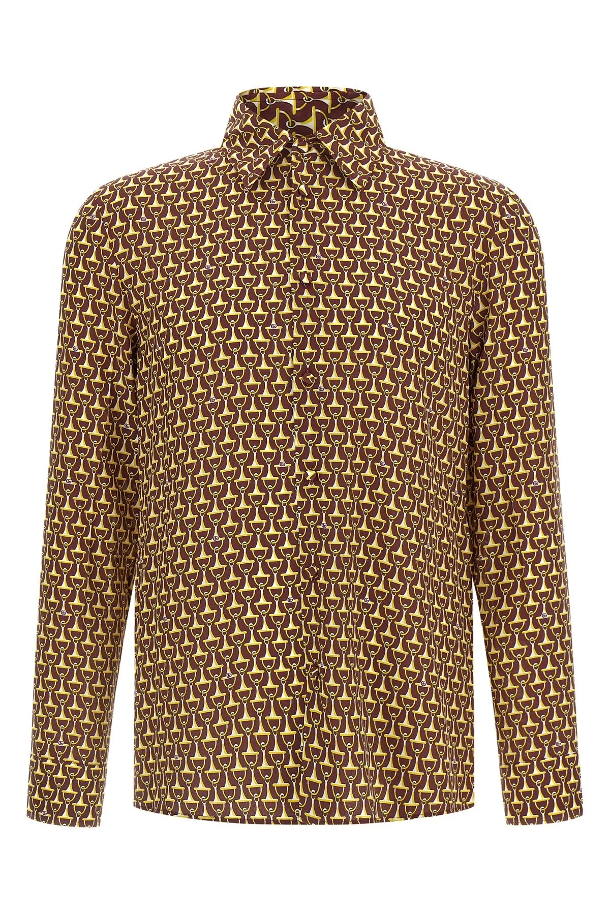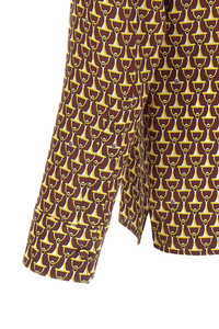 cod. 847034ZAT4Z6018 Crepe de Chine 'Gucci Rosso Ancora' print silk shirt All-over snaffle, pointed collar, front button closure, long cuffed sleeves, side slits. Color: Red Size & Fit: Slim fit Composition: 100% silk Made in: Italy
