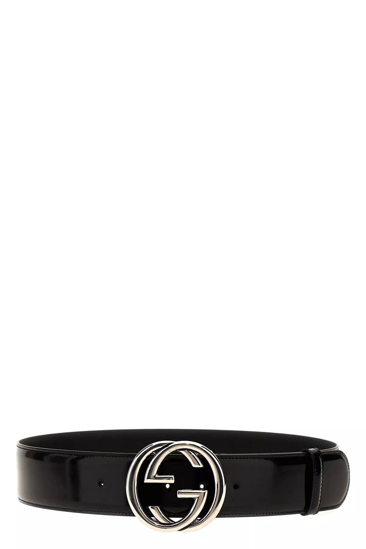 cod. 763389AACBA1000 Patent leather belt, metal 'Incrocio GG' buckle. Color: Black Size & Fit: H 4.5 cm Composition: 100% leather