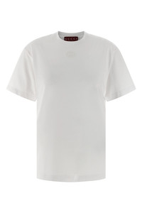 cod. 837959XJHJR9692 Medium cotton jersey t-shirt, with tone-on-tone Incrocio GG embroidery on the front, crew neck, short sleeves with dropped shoulders. Color: White Size & Fit: oversized fit Composition: 100% cotton Made in: Italy