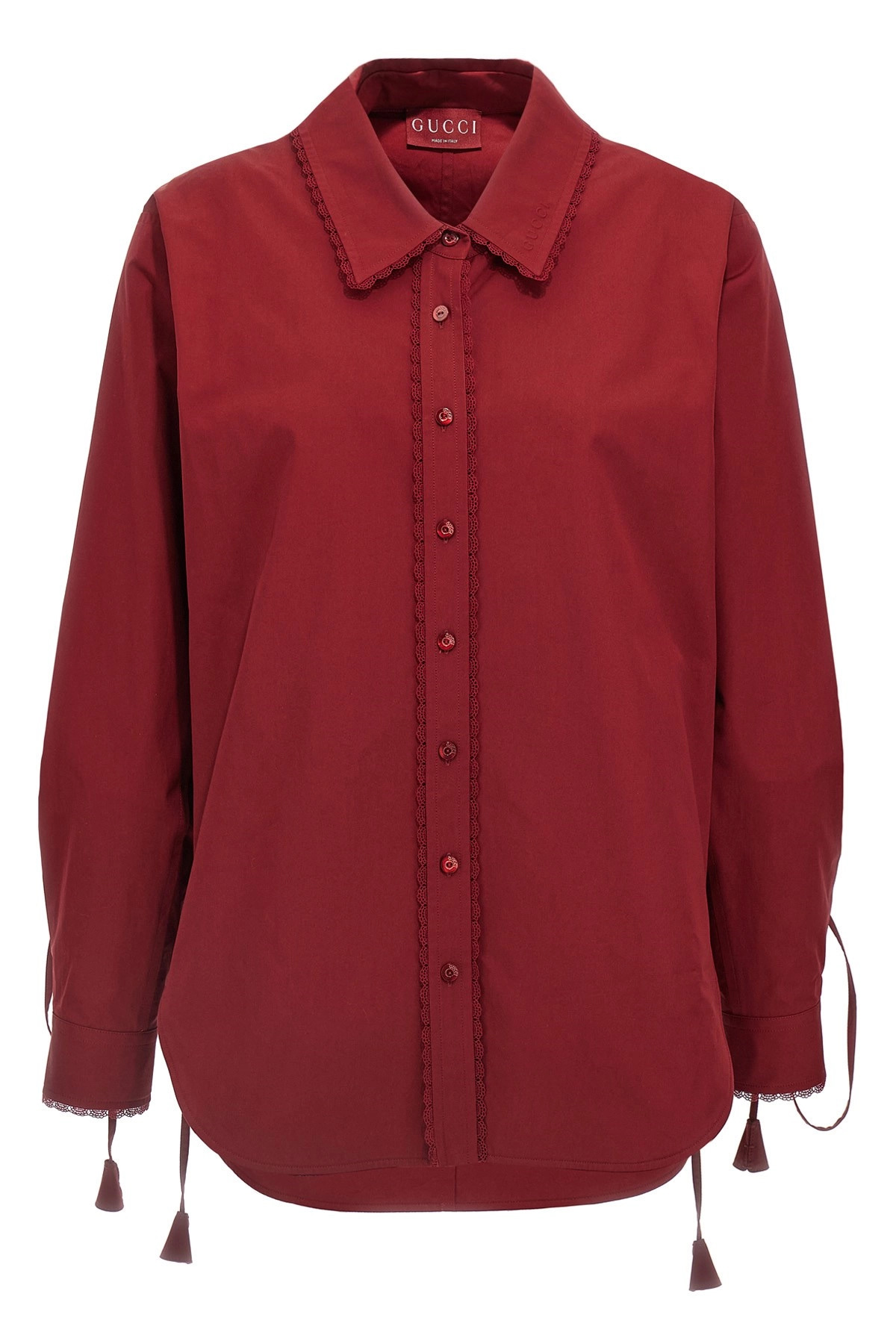cod. 830353Z7ADR6052 Heavy cotton poplin shirt, knotted lacing neckline, button closure, long cuffed sleeves and knotted laces. Color: Red Size & Fit: True to size fit Composition: 100% cotton Made in: Italy