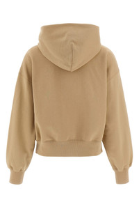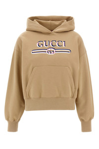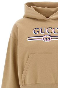 cod. 787274XJG612397 Fleece cotton hoodie with embroidery and front logo print, kangaroo pocket, long cuffed sleeves and dropped shoulders. Color: Beige Size & Fit: true to size fit Composition: 100% cotton Made in: Italy